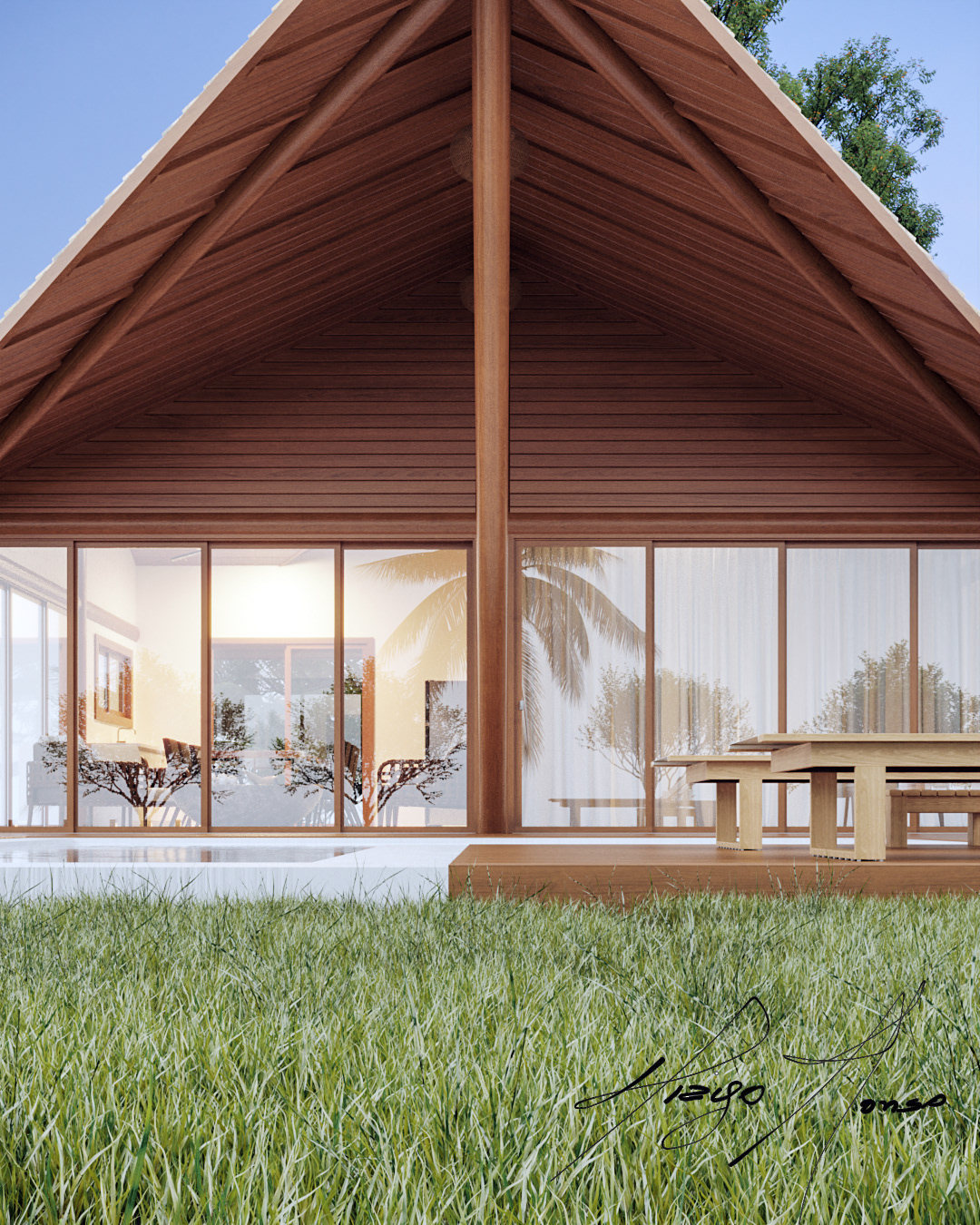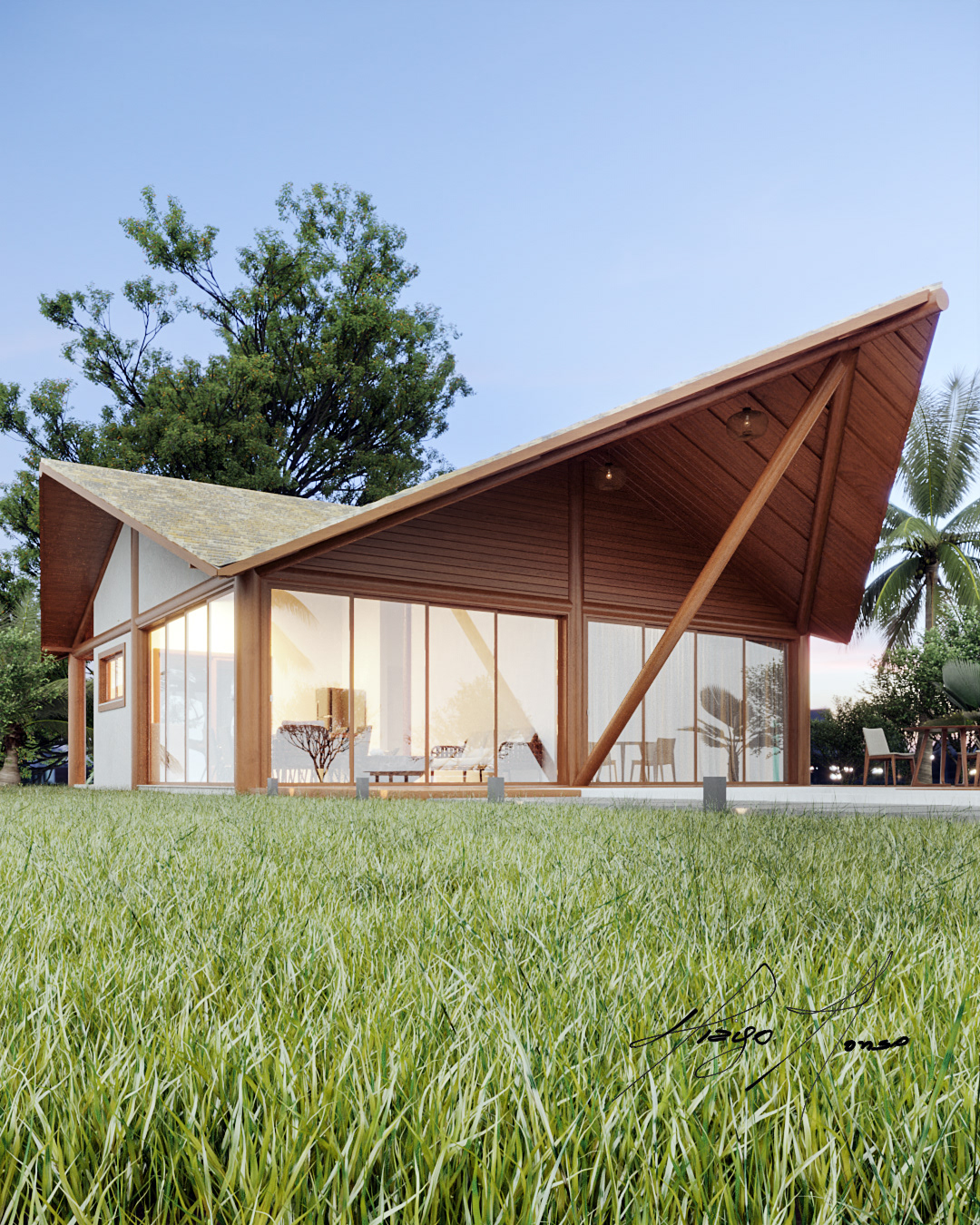 A Casa AN brings all the charm in a compact area open to nature.Its structure in wood and masonry shows that a good result is possible. With a compact built area, it will be possible to add other units in the field area.