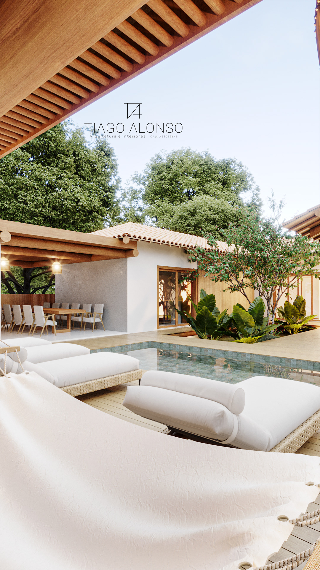 Fully integrated with nature, GM House — located in the Vila da Vila Condominium in Santo André, Bahia — reflects the sensitivity of both the owners and the architect in valuing and preserving the existing vegetation. This choice reveals that it is possible to build with respect, to implant and to preserve at the same time.