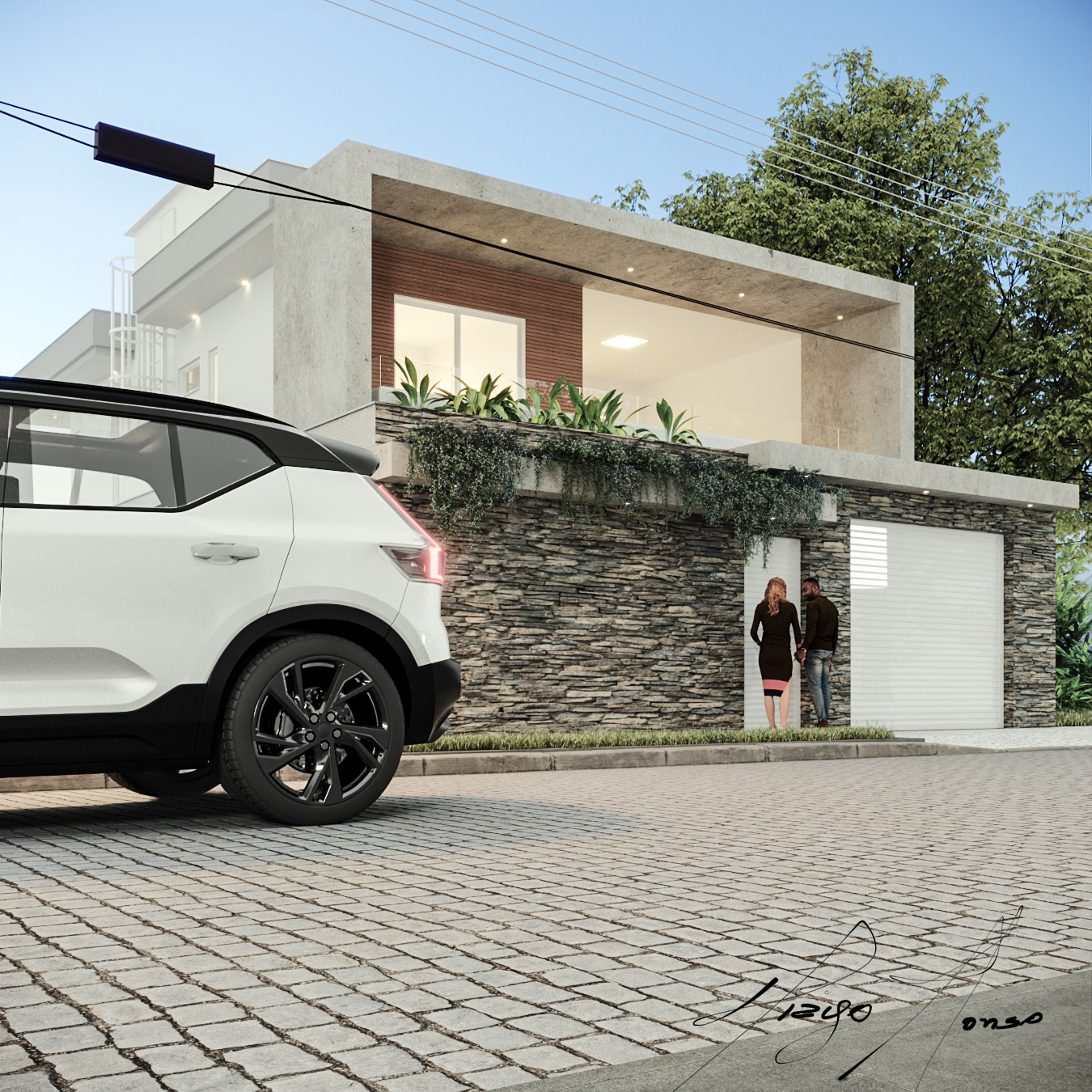 The MM house brings the whole concept of a young couple with the prospect for the arrival of old age. The land is divided for two families, in this case the father will live in one of the houses. Thinking about accessibility was a pleasant process.